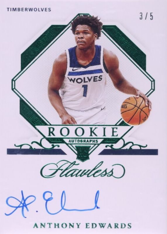 The Anthony Edwards 2020 Flawless #FRA-ANT Rookie Autographs - Emerald /5 card in Raw condition has not changed in price in the last 30 days.
