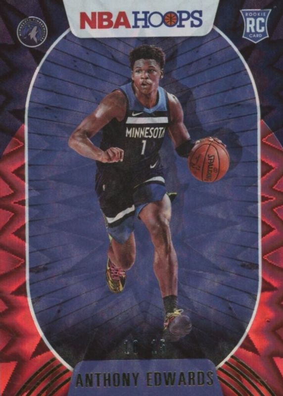 The Anthony Edwards 2020 Hoops #216 Red Explosion /15 Rookie card in Raw condition has not changed in price in the last 30 days and was last sold for $187.50 .