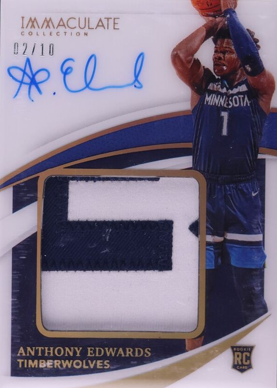 Anthony Edwards 2020 Immaculate #PPA-AED Premium Patch Autographs - Gold (/10) Rookie RAW Price Guide