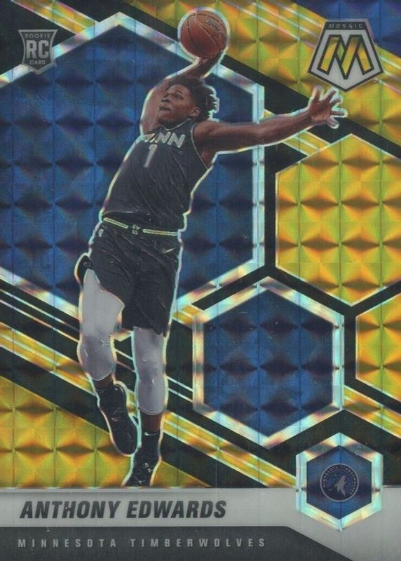 This card is 1 of 133 Anthony Edwards' card variations in the 2020 Mosaic set being tracked by Sports Card Investor, including Base, National Pride, NBA Debut, Fast Break, and Gold Wave.