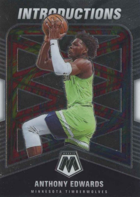 The Anthony Edwards 2020 Mosaic #10 Introductions Rookie card in Raw condition has moved up $0.74 (+32.9%) in the last 30 days and was last sold for $2.99 .