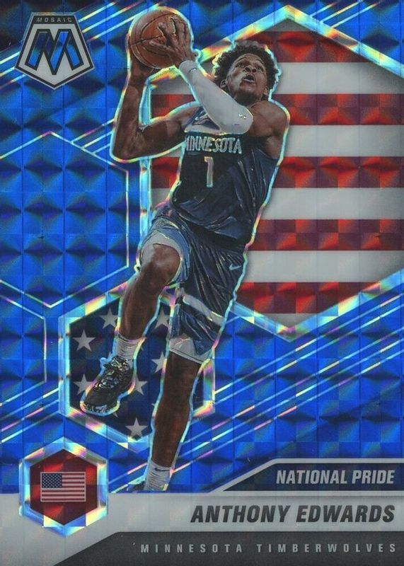 Best Prices Available For Sale of Anthony Edwards 2020 Mosaic #252 National Pride - Blue /99