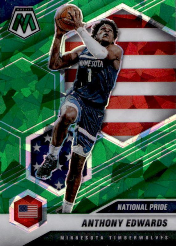 2020-21 Panini Mosaic Anthony Edwards Green Cracked Ice National Pride - No. 252