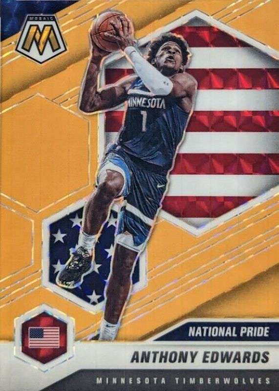 This card is 1 of 133 Anthony Edwards' card variations in the 2020 Mosaic set being tracked by Sports Card Investor, including Base, National Pride, NBA Debut, Fast Break, and Gold Wave.