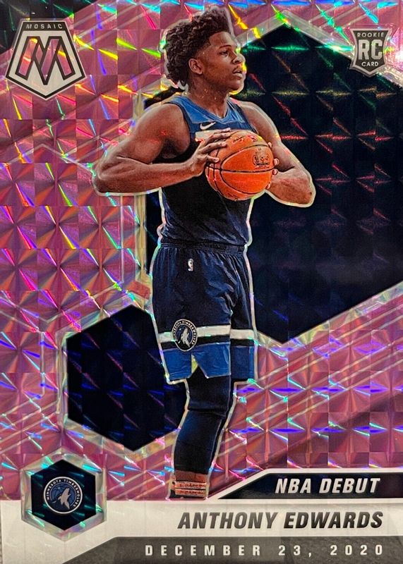 2020-21 Mosaic Basketball Anthony Edwards RC NBA DEBUT PURPLE MOSAIC PRIZM 9/49