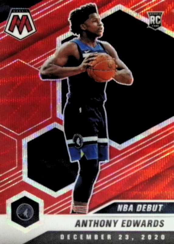 The Anthony Edwards 2020 Mosaic #261 NBA Debut - Red Wave Rookie card in Raw condition has moved up $1.34 (+20.7%) in the last 30 days and was last sold for $7.84 .