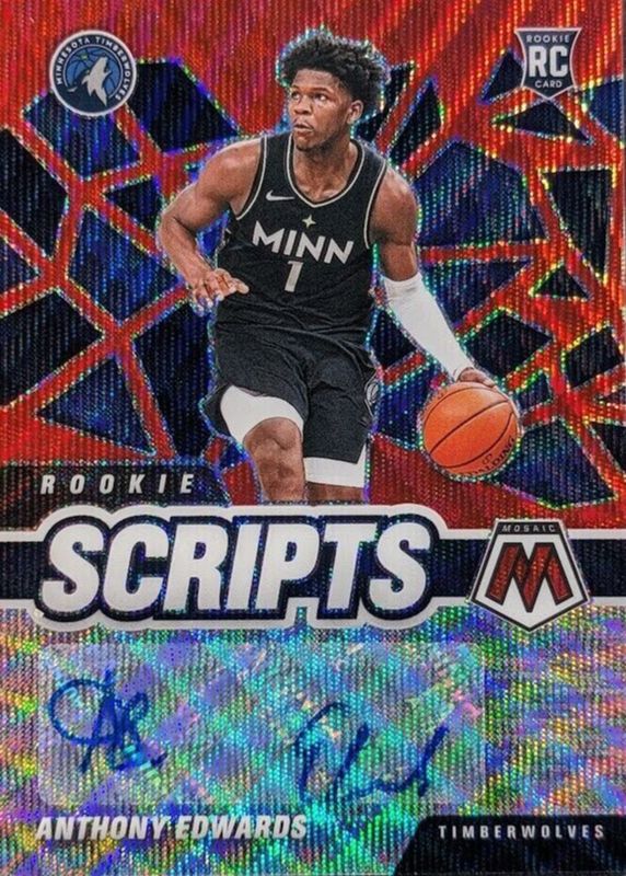 Best Prices Available For Sale of Anthony Edwards 2020 Mosaic #RS-AED Rookie Scripts - Red Wave