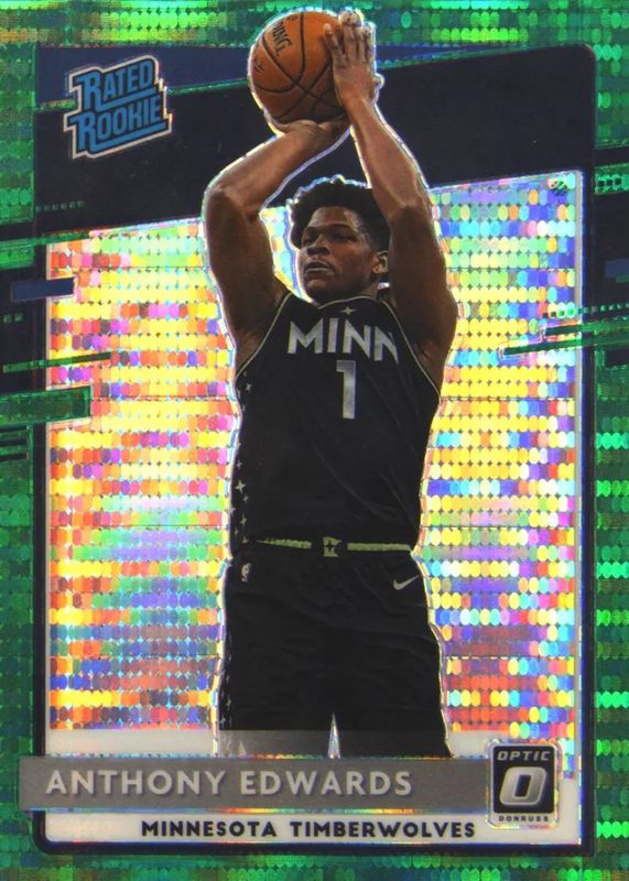The Anthony Edwards 2020 Optic #151 Green Pulsar Rookie card in Raw condition has moved up $18.96 (+36.5%) in the last 30 days and was last sold for $70.96 .