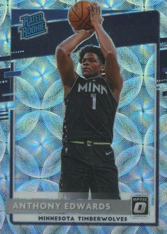 This card is 1 of 93 Anthony Edwards' card variations in the 2020 Optic set being tracked by Sports Card Investor, including Base, Blue Pulsar, Blue Velocity, Checkerboard, and Choice.