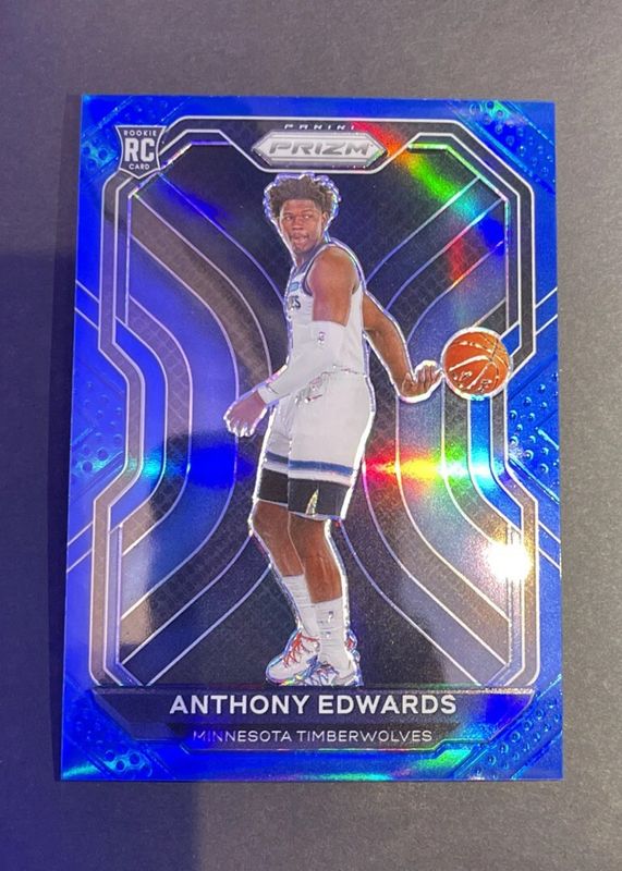 The Anthony Edwards 2020 Prizm Draft Picks #1 Blue /199 Rookie card is 1 of 126 Anthony Edwards' card variations in the 2020 Prizm Draft Picks set being tracked by Sports Card Investor, including #81 Base, #41 Base, #1 Base, #41 Base (Secondary Photo), and #81 Crusade.