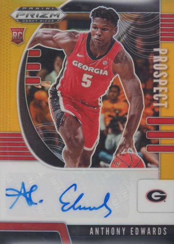 Auctions Ending Soon for Anthony Edwards 2020 Prizm Draft Picks #PA-AE Prospect Autographs - Black Gold /5 Rookie RAW