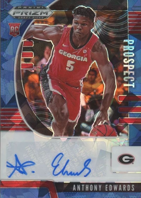 Best Prices Available For Sale of Anthony Edwards 2020 Prizm Draft Picks #PA-AE Prospect Autographs - Blue Ice /75