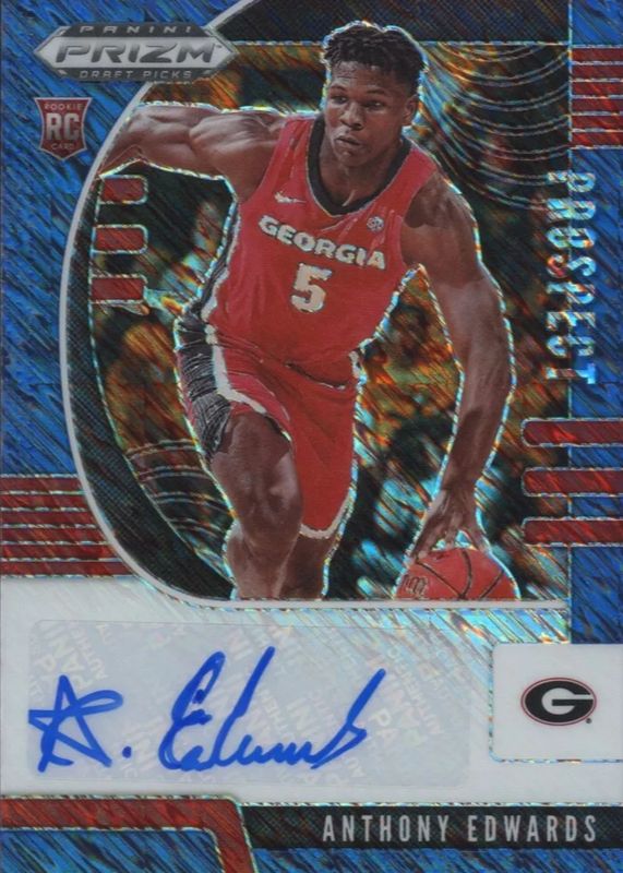 Auctions Ending Soon for Anthony Edwards 2020 Prizm Draft Picks #PA-AE Prospect Autographs - Blue Shimmer /13 Rookie RAW