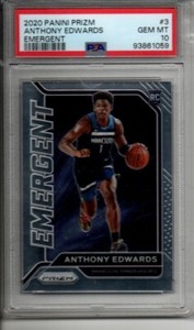 The Anthony Edwards 2020 Prizm #3 Emergent Rookie card in Raw condition has moved down -$0.19 (-7.8%) in the last 30 days and was last sold for $2.26 .