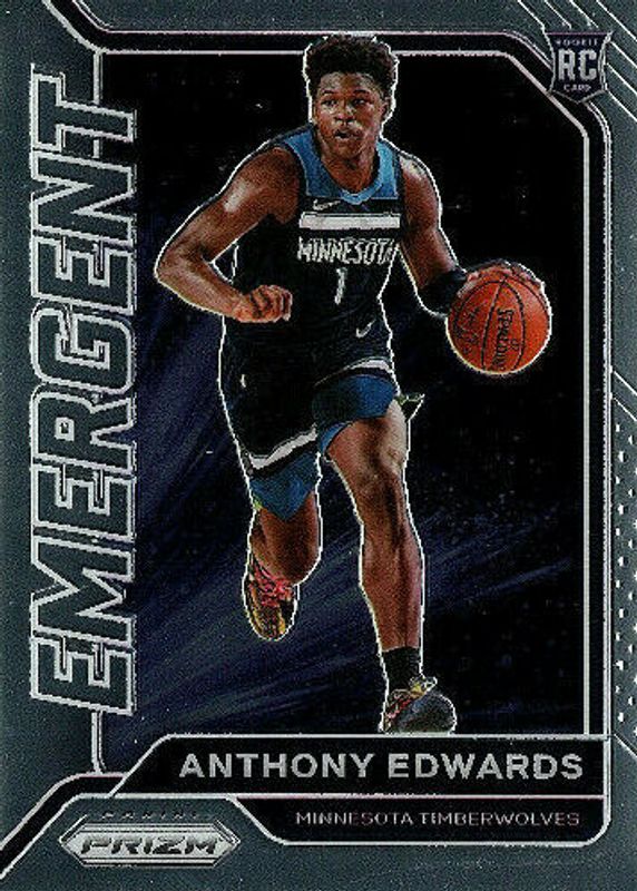 The Anthony Edwards 2020 Prizm #3 Emergent Rookie card in Raw condition has moved down -$0.16 (-8.4%) in the last 30 days and was last sold for $1.75 .