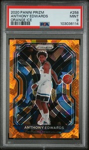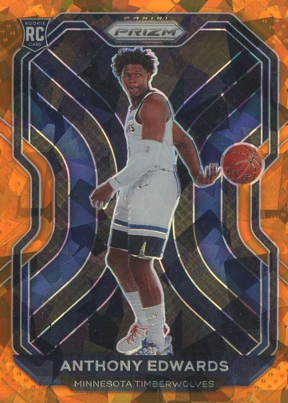 The Anthony Edwards 2020 Prizm #258 Orange Ice Rookie card in Raw condition has moved up $11.35 (+10.5%) in the last 30 days and was last sold for $119.00 .