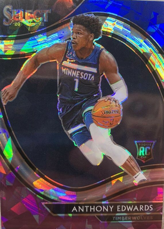 2020-21 Select Courtside Anthony Edwards 300 Blue White Purple Cracked Ice Prizm