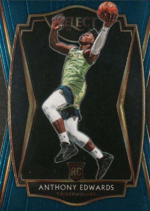 The Anthony Edwards 2020 Select #169 Premier Level Blue Retail Rookie card in Raw condition has moved down -$1.90 (-44.6%) in the last 30 days and was last sold for $2.35 .