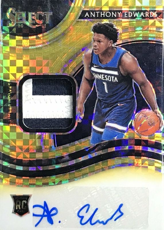 The Anthony Edwards 2020 Select #RJA-EDW Rookie Jersey Autographs - Gold /10 card in Raw condition has not changed in price in the last 30 days and was last sold for $2,575.85 .