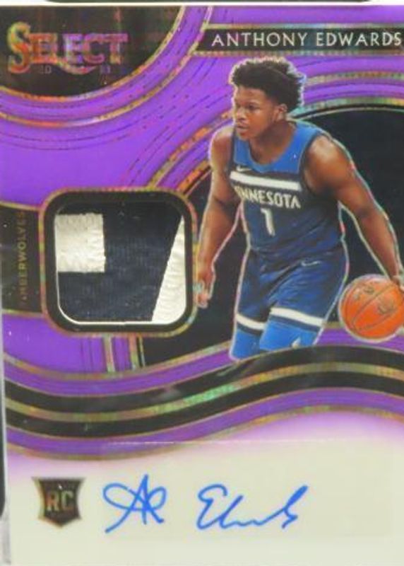 Anthony Edwards 2020 Select #RJA-EDW Rookie Jersey Autographs - Neon Purple Pulsar /15 RAW Price Guide