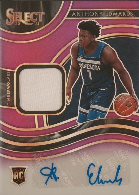 The Anthony Edwards 2020 Select #RJA-EDW Rookie Jersey Autographs - Purple /99 card in Raw condition has not changed in price in the last 30 days and was last sold for $789.00 .