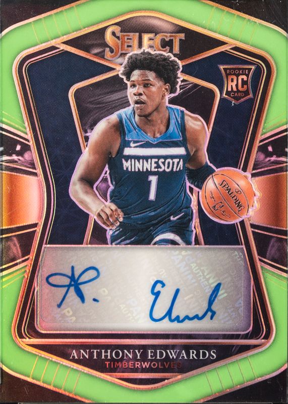 2020 Select Signatures Neon Green Prizm Anthony Edwards ROOKIE AUTO /99 MBA AUTH
