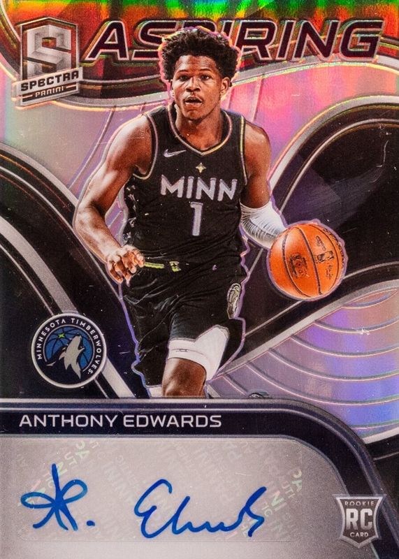 The Anthony Edwards 2020 Spectra #ASP-AED Aspiring Autographs (/35) Rookie card in Raw condition has not changed in price in the last 30 days and was last sold for $700.00 .