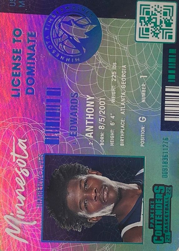 2021-22 Contenders ANTHONY EDWARDS License To Dominate #25 Case Hit Insert SSP🔥