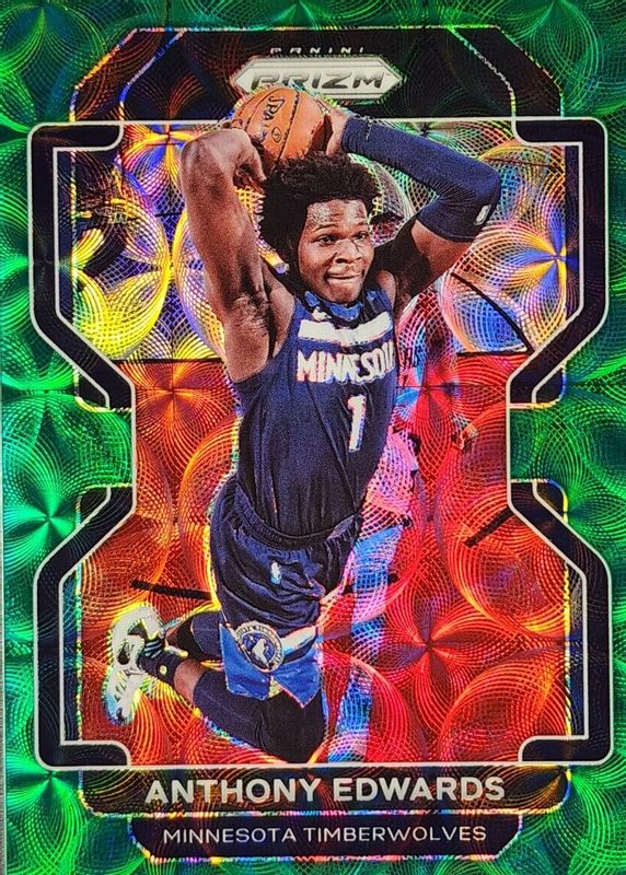 This card is 1 of 78 Anthony Edwards' card variations in the 2021 Prizm set being tracked by Sports Card Investor, including Base, Blue Wave, Choice Blue Yellow Green, Factory Set Blue Hyper, and Factory Set Green Hyper.