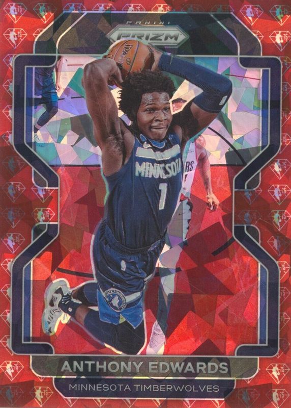 2021-22 Panini Prizm Anthony Edwards #37 NBA 75th Diamond Red Cracked Ice /75