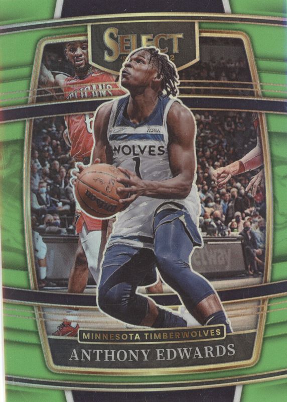 2021-22 Select Anthony Edwards Neon Green Prizm Concourse #16/75 Timberwolves