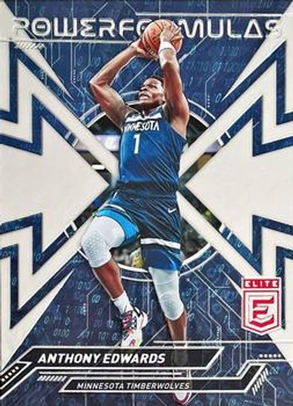 The Anthony Edwards 2022 Elite #6 Power Formulas card is 1 of 111 Anthony Edwards' card variations in the 2022 Elite set being tracked by Sports Card Investor, including Base, Asia Exclusive, Asia Hyper Red & Green, Aspirations, and Orange.