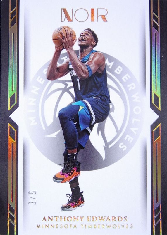 This card is 1 of 15 Anthony Edwards' card variations in the 2022 Noir set being tracked by Sports Card Investor, including Association Edition /99, Icon Edition /99, Statement Edition /25, Association Edition - Holo Silver /49, and Icon Edition - Holo Silver /49.