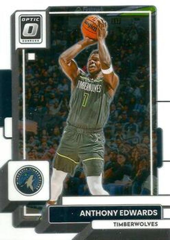 The Anthony Edwards 2022 Optic #45 Base card is 1 of 134 Anthony Edwards' card variations in the 2022 Optic set being tracked by Sports Card Investor, including Checkerboard, Choice Red & Green, Fast Break, Green Shock, and Holo.