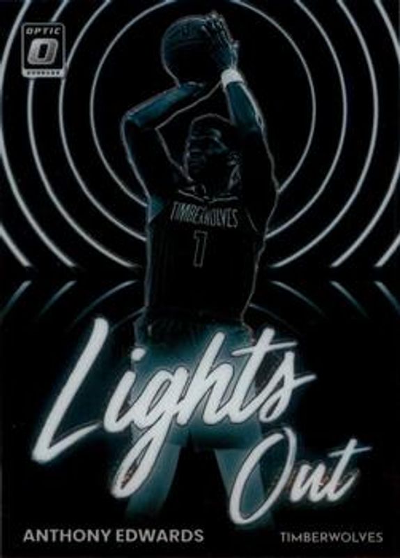 The Anthony Edwards 2022 Optic #12 Lights Out card is 1 of 134 Anthony Edwards' card variations in the 2022 Optic set being tracked by Sports Card Investor, including Base, Checkerboard, Choice Red & Green, Fast Break, and Green Shock.