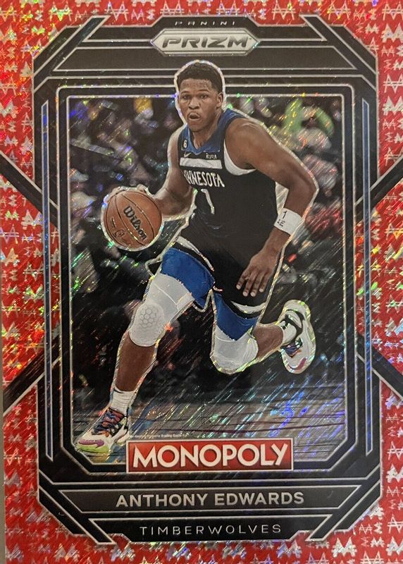 Best Prices Available For Sale of Anthony Edwards 2022 Prizm Monopoly #53 Red Money Shimmer /100