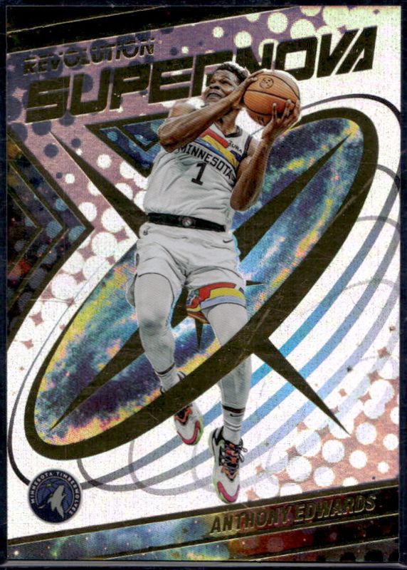 The Anthony Edwards 2022 Revolution #3 Supernova card is 1 of 52 Anthony Edwards' card variations in the 2022 Revolution set being tracked by Sports Card Investor, including Base, Asia Red, Astro, Chinese New Year, and Fractal.