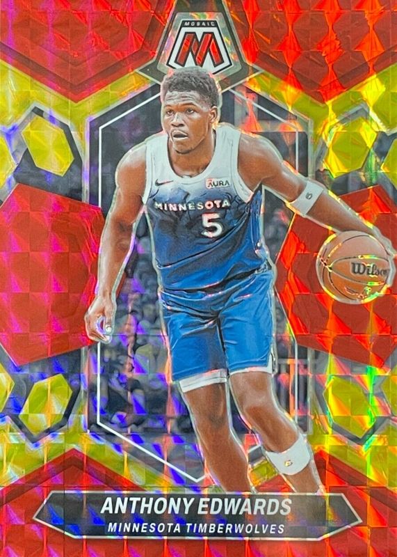 Auctions Ending Soon for Anthony Edwards 2023 Mosaic #33 Choice Fusion Red & Yellow /75 RAW