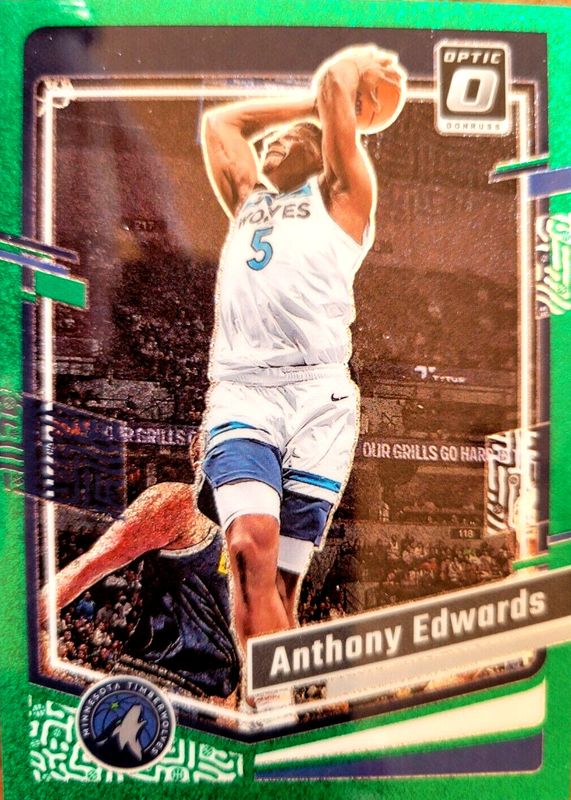 ANTHONY EDWARDS 2023-24 DONRUSS OPTIC GREEN GLITTER WOLVES /77 Q3988