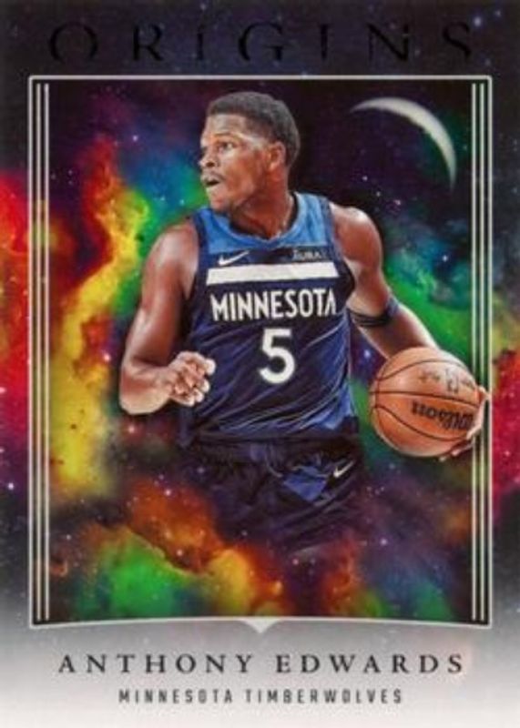 The Anthony Edwards 2023 Origins #59 Base card is 1 of 31 Anthony Edwards' card variations in the 2023 Origins set being tracked by Sports Card Investor, including Basketballs, Cosmos, Red, Tessellated, and Maroon /115.