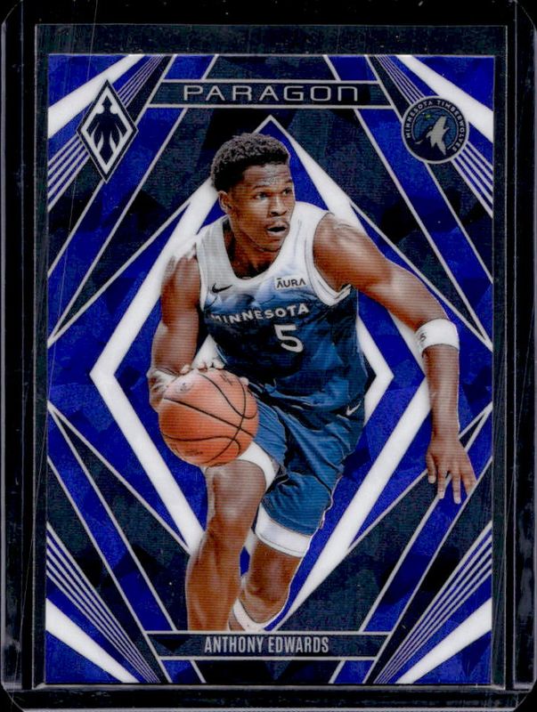 The Anthony Edwards 2023 Phoenix #9 Paragon - Blue Ice card is 1 of 168 Anthony Edwards' card variations in the 2023 Phoenix set being tracked by Sports Card Investor, including Base, Blue Ice, Color Burst, Dream Weaver, and Hieroglyphs.