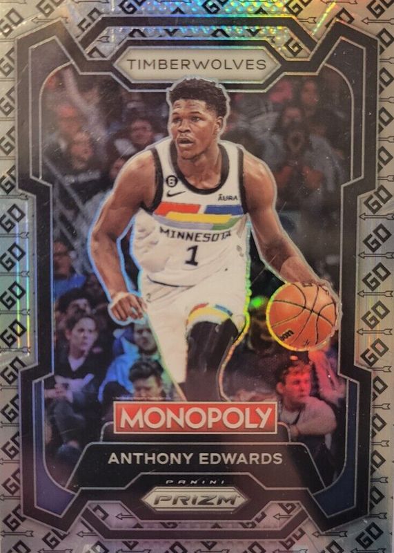 The Anthony Edwards 2023 Prizm Monopoly #52 GO Space card in Raw condition has not changed in price in the last 30 days and was last sold for $10.50 .
