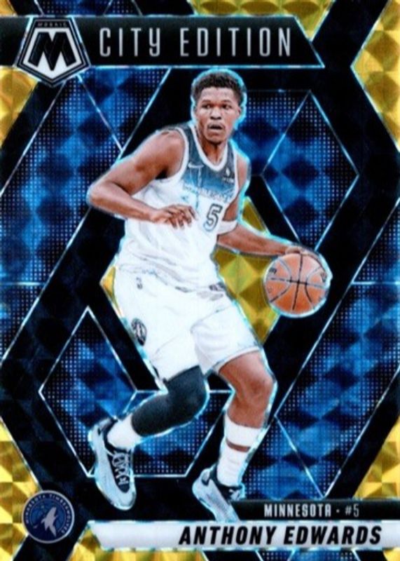 This card is 1 of 113 Anthony Edwards' card variations in the 2024 Mosaic set being tracked by Sports Card Investor, including City Edition - Red Seismic /299, Red Seismic /299, City Edition - Orange /249, City Edition - Purple Fluorescent /249, and Orange /249.