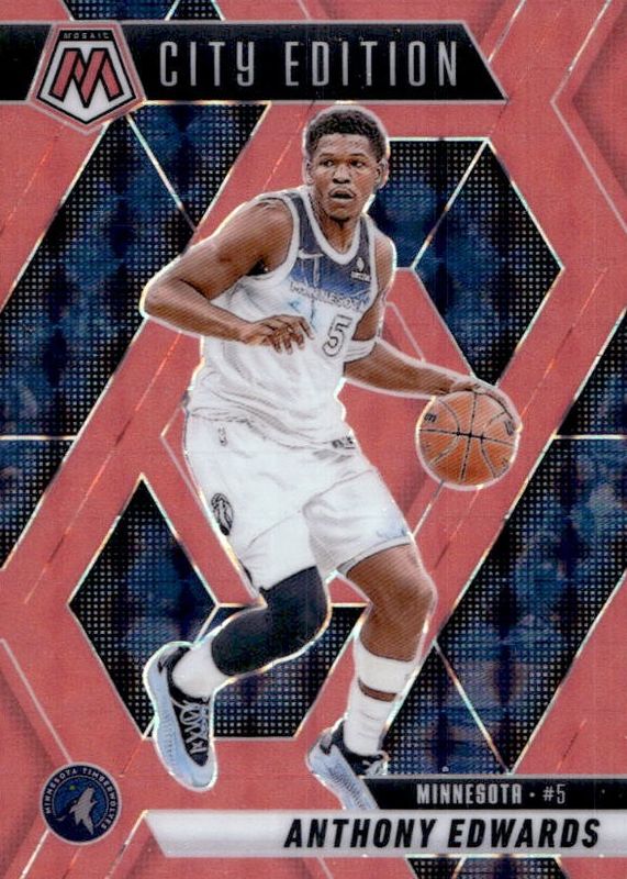 This card is 1 of 113 Anthony Edwards' card variations in the 2024 Mosaic set being tracked by Sports Card Investor, including City Edition - Red Seismic /299, Red Seismic /299, City Edition - Orange /249, City Edition - Purple Fluorescent /249, and Orange /249.