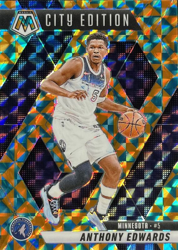 This card is 1 of 113 Anthony Edwards' card variations in the 2024 Mosaic set being tracked by Sports Card Investor, including City Edition - Red Seismic /299, Red Seismic /299, City Edition - Orange /249, City Edition - Purple Fluorescent /249, and Orange /249.
