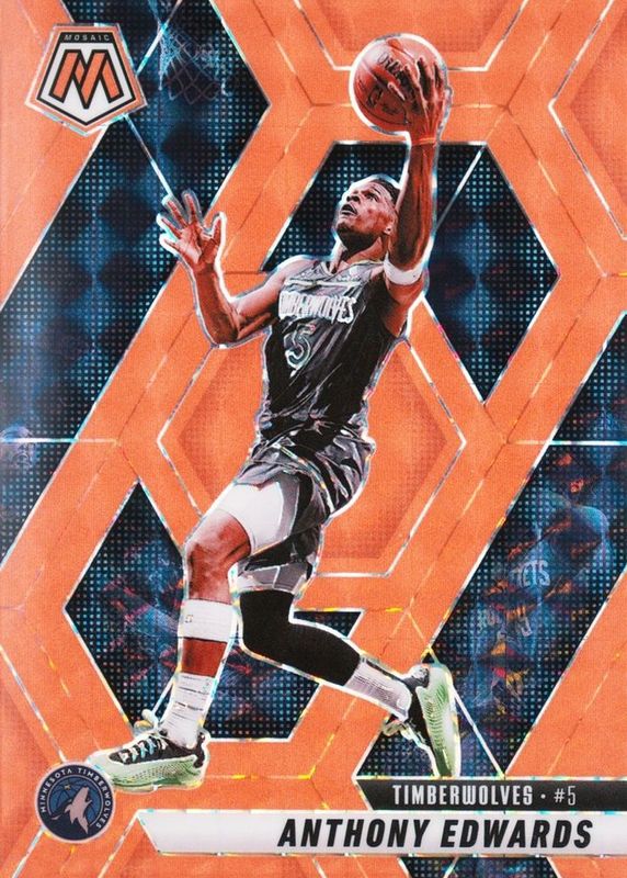 This card is 1 of 113 Anthony Edwards' card variations in the 2024 Mosaic set being tracked by Sports Card Investor, including City Edition - Red Seismic /299, Red Seismic /299, City Edition - Orange /249, City Edition - Purple Fluorescent /249, and Orange /249.