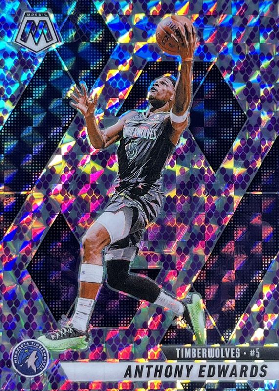 This card is 1 of 113 Anthony Edwards' card variations in the 2024 Mosaic set being tracked by Sports Card Investor, including City Edition - Red Seismic /299, Red Seismic /299, City Edition - Orange /249, City Edition - Purple Fluorescent /249, and Orange /249.