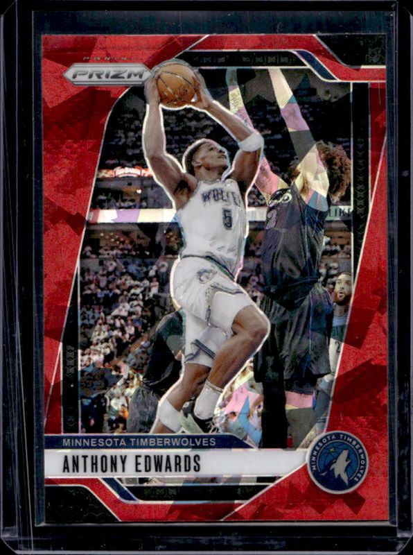 The Anthony Edwards 2024 Prizm #100 Red Ice card is 1 of 142 Anthony Edwards' card variations in the 2024 Prizm set being tracked by Sports Card Investor, including Base, Choice Blue Yellow Green, Green, Green Ice, and Green Wave.