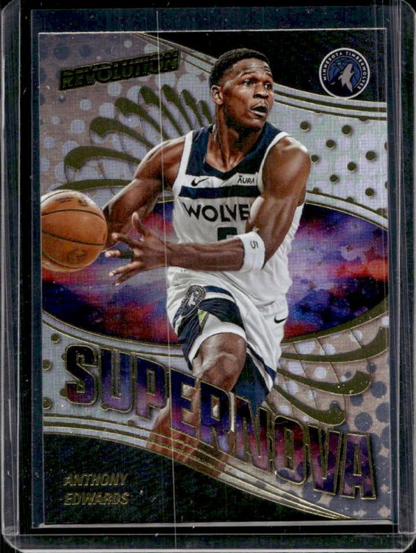 The Anthony Edwards 2024 Revolution #6 Supernova card is 1 of 98 Anthony Edwards' card variations in the 2024 Revolution set being tracked by Sports Card Investor, including Base, Astro, Blue Storm, Chinese New Year, and Fractal.