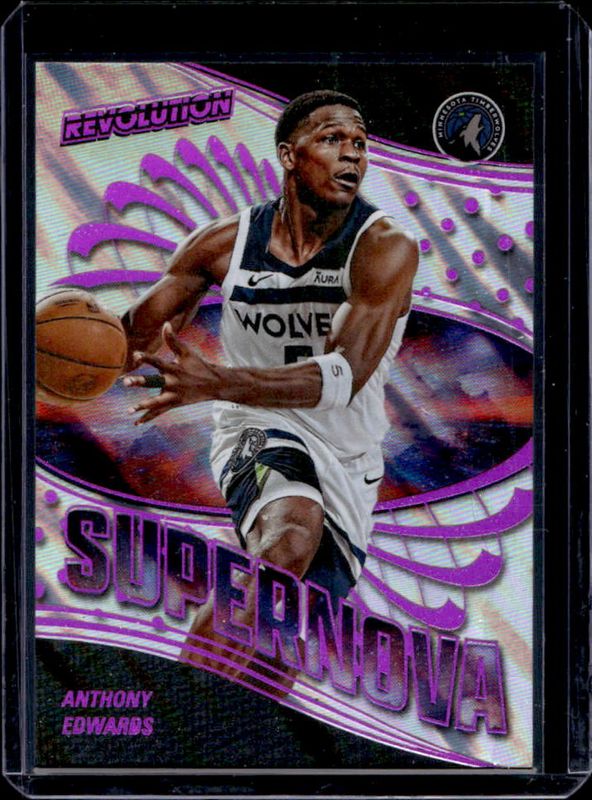 The Anthony Edwards 2024 Revolution #6 Supernova - Lava /10 card is 1 of 98 Anthony Edwards' card variations in the 2024 Revolution set being tracked by Sports Card Investor, including Base, Astro, Blue Storm, Chinese New Year, and Fractal.